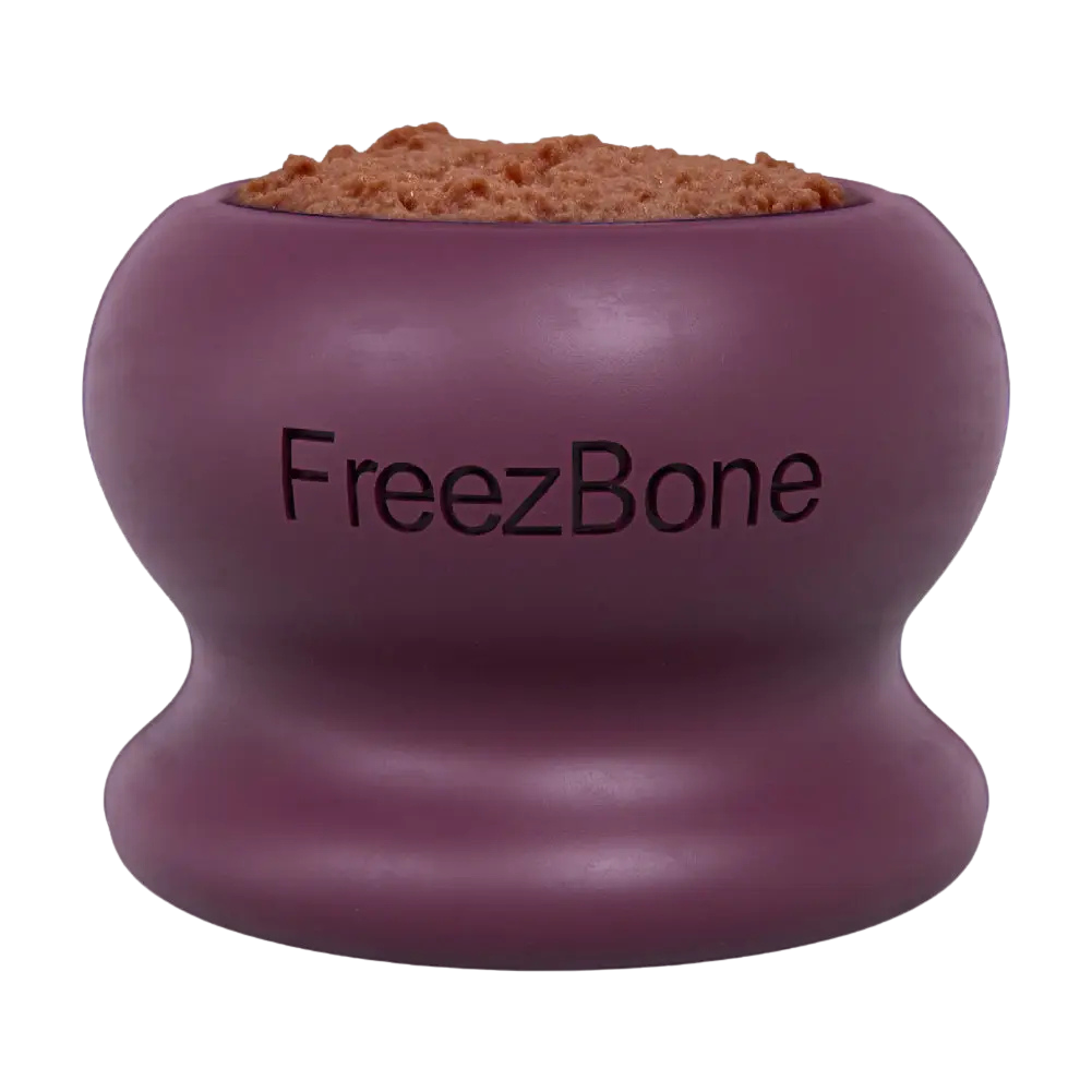 The Freezball is a long-lasting and fillable chew toy for moderate chewers and anxious pups. It is made of 100% natural rubber, which is non-toxic and biodegradable. The ball is dishwasher safe and easy to clean, and it can be filled with customizable or ready-to-use fillers that can be frozen for up to 45 minutes of entertainment. Fit moderate chewers!